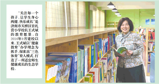 “关注每一个孩子,让学生身心两健、快乐成长”是济南市天桥区官扎营小学校长王式斌的教育愿景。自2016年9月建校以来,王式斌以“健康教育”办学理念为抓手,探索出“三色体育”育人模式,打造了一所适宜师生健康成长的生态学校。