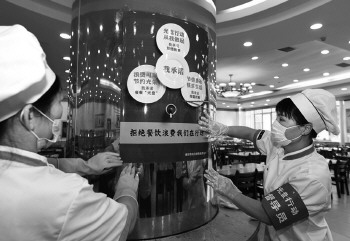 潍坊市级机关食堂在全省率先上岗“光盘行动”督导员。资料片