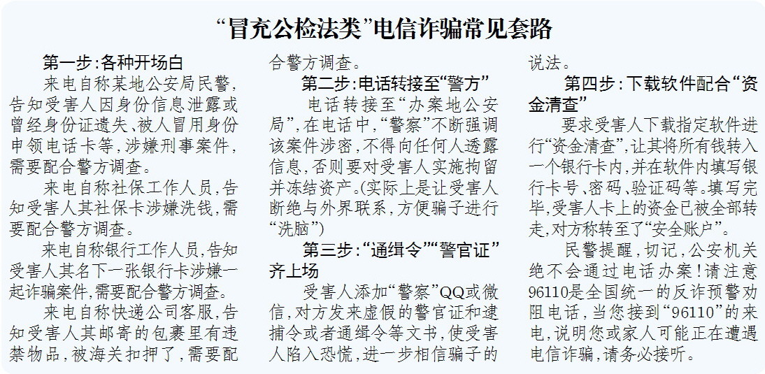 “冒充公检法类”电信诈骗常见套路