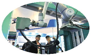 第六届山东省绿博会展馆内,参展的室内喷涂机器人备受关注。 本报记者 张中 摄