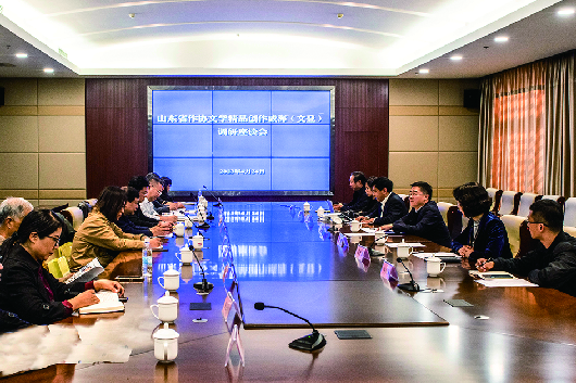 4月24日,省作协党组书记、副主席赵艺丁带队来文登就文学精品创作和作协工作开展调研座谈。