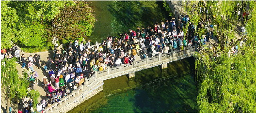 “五一”假期,济南第一泉风景区人潮涌动。