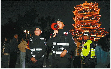 超然楼前“花式喊话”让游客感叹“警察蜀黍太可爱了”。