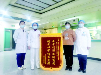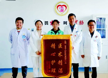 经术后精心护理,患者顺利康复出院,并送上锦旗表示感谢。