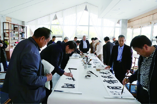 5月2日上午,文登区书法交流笔会在“文登学”艺术馆举行,数十名书法爱好者齐聚一堂、以书会友,共同切磋技艺、品读文登学文化。马尚林、董志强、曲荣爱、王建民、孙克勤等著名书法家现场挥毫泼墨,把对祖国的祝福和美好生活的想往倾注于笔端,生动地书写出新时代人民的幸福生活,书法家们有的单独创作、有的通力合作,创作的三十多幅作品题材丰富多彩,风格各具特色,或浑厚雄丽大气磅礴,或随意挥洒温婉灵动,笔墨精道,韵味隽永,书法家们还现场通过言传身教、探讨交流的方式,同在场的书法爱好者共同体验、领略书法精髓和书法艺术风范,表达对书法艺术的热爱,促进弘扬了“文登学”传统文化。