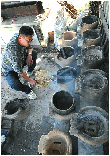 准备传统的围炉炖鸡。