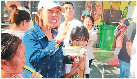 ◤工作人员向食客发放曲堤黄瓜。
