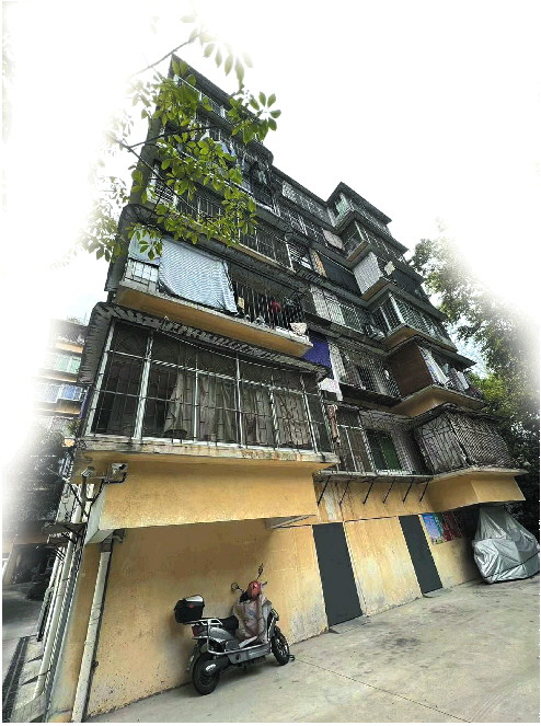 和学校不时传来的喧闹声形成强烈对比,这个仅有四五栋楼的教职工宿舍小院非常安静,少有人进出,偶尔从楼上传来炒菜声和搓麻将的声音。宿舍楼显得很破旧,不少住户将床单、竹席凑合着当窗帘用。