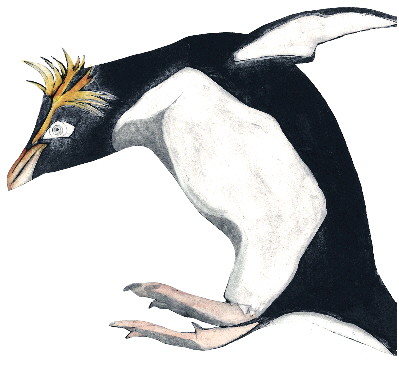 北跳岩企鹅。从20世纪90年代至今,这种企鹅数量锐减。原因之一是石油泄漏造成的污染。