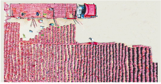 5月19日上午,金乡大蒜国际交易市场内,不少蒜商将刚刚收购的鲜蒜拆包晾晒,密密麻麻的大蒜铺满一地。进入5月中旬,济宁市金乡县高河镇周油坊村的农田里,到处都是一派丰收景象,今年大蒜价格出现明显回升,较去年翻了一番,蒜农心里美滋滋。数据显示,2022年5月19日的大蒜价格,鲜蒜为每斤1.5-1.8元,而到了2023年5月19日,鲜蒜价格涨到了每斤3.4-4.5元,不过仍处于合理价格区间。金乡大蒜种植历史已达2000余年,全县常年种植大蒜70万亩,年均产量80万吨,带动周边种植大蒜200余万亩,素有“世界大蒜看中国,中国大蒜看金乡”的美誉。 记者 李静 李岩松 摄影报道