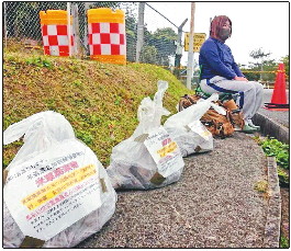 ▲宫城秋乃带着美军废弃物摆在驻日美军基地外抗议。