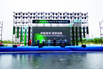 高考将至,5月21日上午,2023年“绿丝带”爱心送考护考志愿服务行动(以下简称“绿丝带”爱心送考护考)在济宁高新区鸿雁湖公园启动。