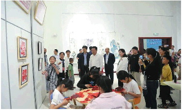 随后,参加开幕式的领导和现场的儿童、家长代表在儿童解说员的生动讲解下,认真观看了绘画、陶瓷、黏土、扎染作品的展览。观看了儿童代表现场剪纸、绘画,并给予了高度评价,现场气氛热烈非凡。