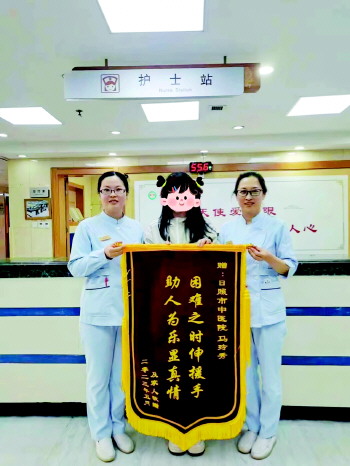 因为送医治疗及时,磊磊并无大碍,经过8天的治疗休养便康复出院了。之后,马玲秀并没有和身边人谈起这件事,但磊磊的家长却始终把这位在危急中伸出援手的姑娘放在了心上。虽然没有姓名和联系方式,但经过多方打听,孩子的家人最终还是得到了马玲秀的信息,并将这面锦旗送到了她所在的科室。