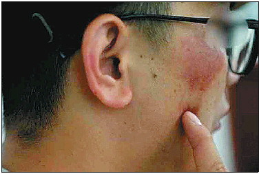 ◤胡江脸上的伤疤是被诈骗窝点的保安用刀伤的。