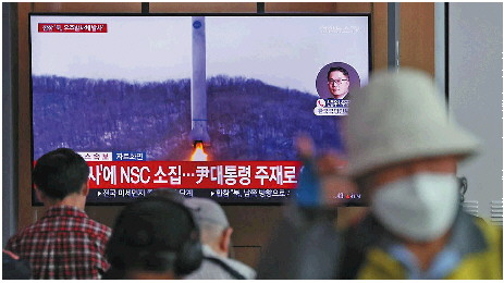 韩国民众在首尔通过电视收看朝鲜发射消息。