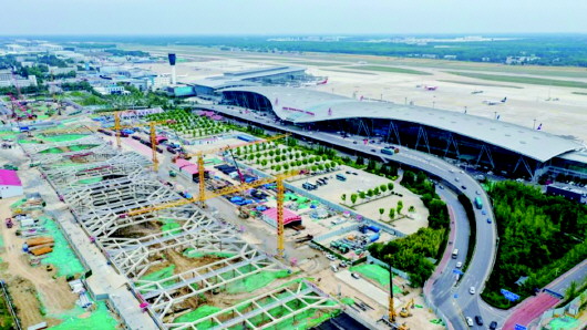 济南机场二期改扩建综合交通枢纽工程(一阶段)位于T1航站楼西侧,施工现场距离航站楼水平距离仅85米,施工周期730天,包含地铁工程、高架桥工程、管廊工程、人防工程、道路工程及管线迁改工程。施工过程中,各参建单位科学制定施工方案,合理组织施工计划,完美解决机械设备限高、噪音污染、漂浮物及灰尘污染、无线电通信干扰等问题,高标准、高质量、高效率完成各项施工任务,确保济南机场不停航有序安全平稳运行。