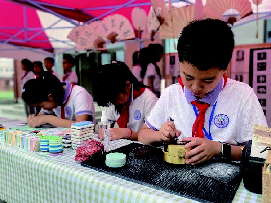 六一儿童节当天,沈阳路小学组织了“黄河情·家国梦·少年志”跨学科项目化学习成果展示,孩子们展示了学做豆腐、造纸、面塑、篆刻等传统技能。 记者 高洪超 通讯员 曹海莲 摄影报道