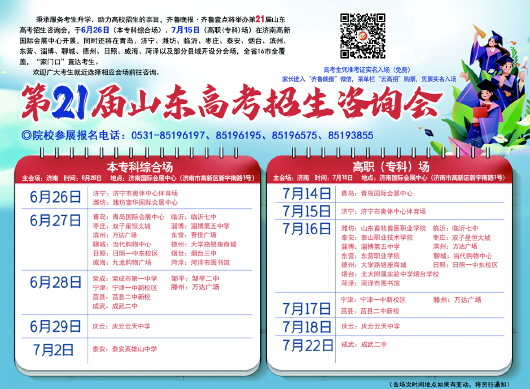 2023年山东高考招生咨询会枣庄、滕州本科综合场将于6月27日、28日,分别在枣庄双子星恒太城、滕州万达举行。