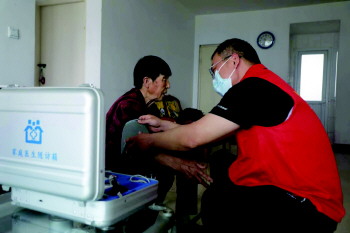 “婶子,最近身体怎么样,按时吃药了吗?我帮您测一下血压和血糖。”从仲阿姨家里出来后,刘凤涛又马不停蹄地赶往3号楼的王阿姨家里。看到刘凤涛的到来,王阿姨露出灿烂的笑容,“有你们定期过来上门帮我看病,辛苦啦,谢谢你们。”