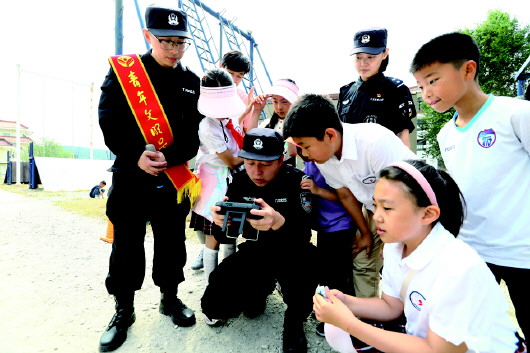 活动一开始,先由便衣侦查大队民警给大家上了一堂课,教大家外出时该怎么保护自己的物品。随后特警大队的民警带领大家参观了各种警用装备、警车、警用无人机等,并现场展示了排爆机器人、无人机空中喊话以及警体训练。