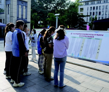 6月6日下午,不少考生来到潍坊中学考点看考场安排。