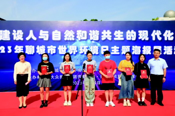 活动中,为主题海报创作者代表颁发了荣誉证书,聊城大学东昌学院美术设计系学生王明月作为主题海报创作者代表发言。“聊城的生态颜值不断刷新,蓝天白云、群星闪烁、清水绿岸已经成为常态,我们在这座生态宜居的城市求学、生活,幸福感十足,让我们一起行动起来,从身边的小事情做起,通过实际行动来践行环保理念。”王明月说,在今年聊城市世界环境日主题海报创作活动中,学校的老师给予了精心的指导,她和同学们进行了思想碰撞,齐心协力创作世界环境日宣传海报,在这个过程中加深了对世界环境日的了解,以及对未来美丽中国的期待,加深了对“建设人与自然和谐共生的现代化”主题的理解与感悟。