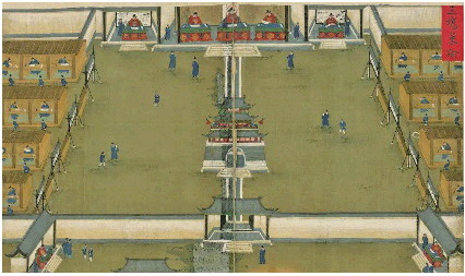 《明人考试图》描绘了贡院内科举考试的场景,此图现存故宫博物院。
