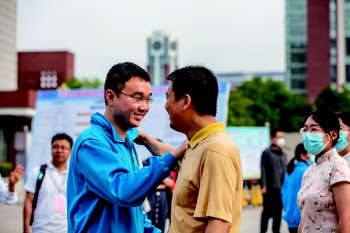 每一年的高考,不仅承载着亿万学子的梦想,更见证着每个家庭的期待与盼望。6月7日,高考开考首日,在济宁一中北湖校区考点通往考场的路上,由班主任组成的“欢迎通道”,成为考点外的一道暖心之景。“加油加油……”“放平心态……”每当学生路过,“欢迎通道”的老师们就会满面笑容,说着鼓劲的话。或许是看到自己的老师有了底,不少神情紧张的考生双肩渐渐松弛,举起左手与老师击掌加油。有的考生更是径直走到老师面前,与老师互拍肩膀,欣喜之情跃于脸上。