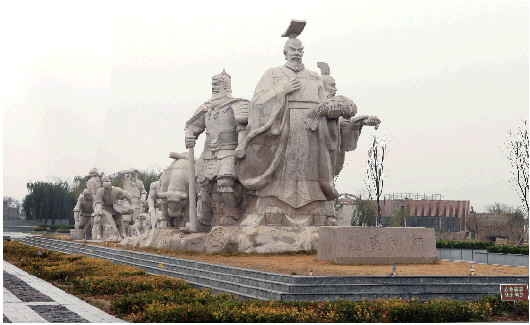寿光巨淀湖景区汉武躬耕组雕。