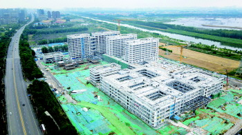 走进位于太白湖新区的济宁市公共卫生中医医疗中心(以下简称:市中医院新院区)施工现场,工地上机器轰鸣运转,工人们挥洒汗水,现场热火朝天。该项目建成后将成为集公共卫生中医医疗、综合医疗、教学、科研、中医药预防康复保健为一体的公共卫生健康服务综合体,将全面提升济宁市中医药服务能力。图为市中医院新院区。 记者 丁安顺 崔常松 摄