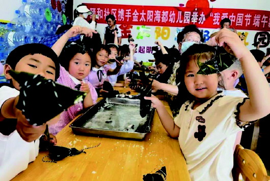 为进一步引导广大未成年人了解和感受中华传统节日文化,加强滨海新区双零社区的建设工作,颐和社区联合金太阳海都幼儿园开展“我爱中国节,端午飘粽香”活动。