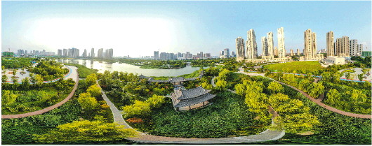 天桥区构建城市更新新格局,新增绿地14万平方米、绿道45公里,城市公园5个。图为美丽的云锦湖公园。