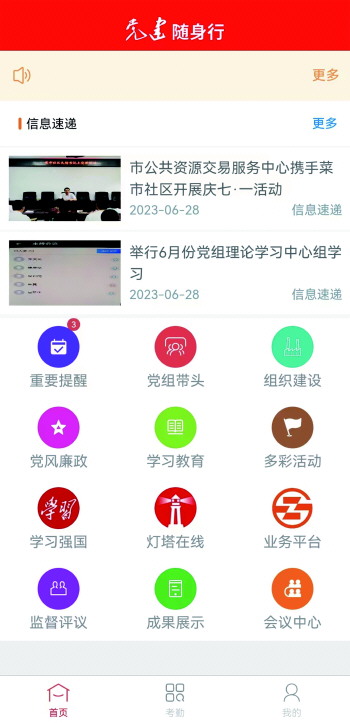 党建随身行APP主界面。