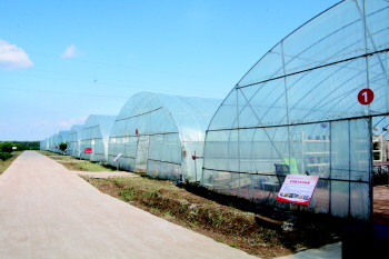 蜀山源家庭农场建成的高标准现代化大拱棚。
