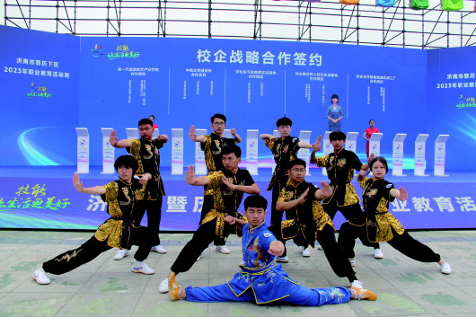 学生在济南市2023年职教活动周上进行武术展示