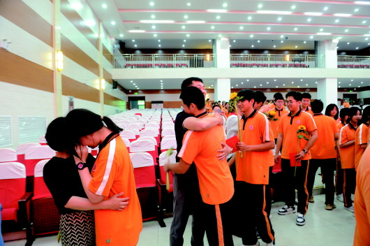 高考前夕,学生们和老师拥抱。。