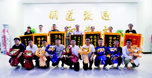 6月26日,一些学生和家长给老师们送来锦旗。