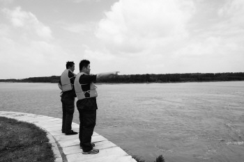 工作人员在视察水流情况。