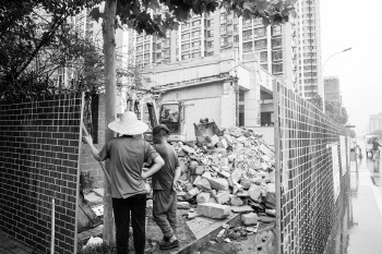 7月12日,记者来到春景花园小区的门口,看到原中百便利建筑现如今已几乎被夷为平地,三四个施工人员正冒雨清理着现场的建筑残骸。针对目前的情况,刘川依旧表示担忧。