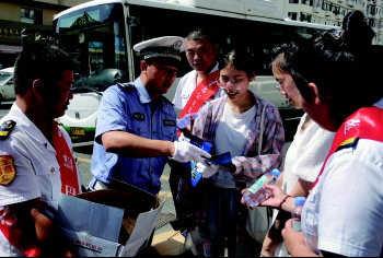 7月5日下午,青岛交警市南大队隧道中队联合公交集团隧道巴士第三、五、八分公司以及公交集团崂山巴士第三分公司志愿者团队在团岛市场周边一起开展“一盔一带,安全文明出行”“安全乘公交,有效避免突发事件”为主题的公益宣传活动。现场对市民横穿马路、驾乘车辆与骑摩托车、摩托车炸街等违法行为进行合理引导。