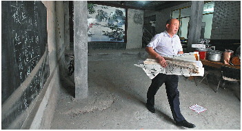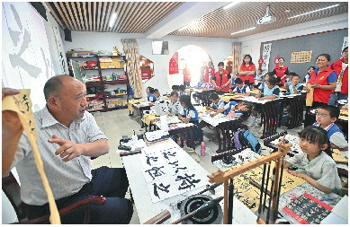 暑假里,刘世彬每天往返于朱家庄和梁三村的公益书法课堂。