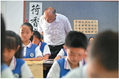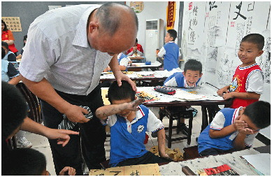 刘世彬手把手矫正学生的握笔姿势。