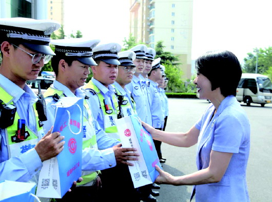 在市交警二大队,慰问组一行对一线交警顶烈日、冒酷暑,坚守岗位、无私奉献的敬业精神给予充分肯定,尤其对他们在旅游旺季为市民及游客营造平安、畅通、文明、有序的出行环境给予高度评价,嘱咐他们做好安全防护,保重身体。