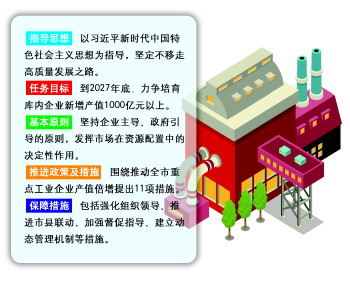《实施意见》的任务目标是综合考量产业特色、行业地位等因素,在潍坊市范围内筛选确定100家左右重点工业企业,纳入工业企业“倍增计划”培育库,推动企业实施“倍增计划”。到2027年底,力争培育库内企业新增产值1000亿元以上。