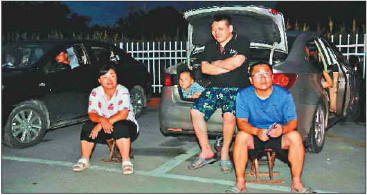8月6日凌晨,地震发生后,位于震中的平原县王打卦镇群众在户外有序避险。 新华社发
