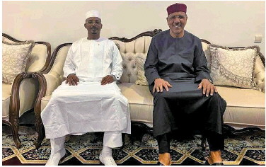这是乍得总统代比在社交媒体上发布的7月30日赴尼日尔斡旋时与被扣押的尼日尔总统巴祖姆(右)会面的照片。