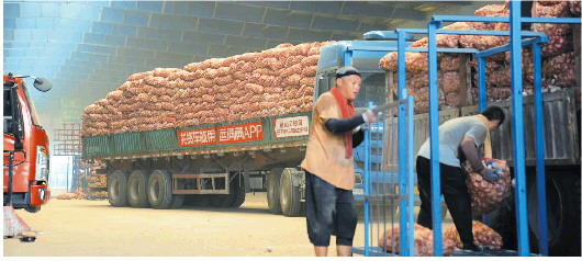 每年的5月中下旬到6月初,都是新鲜大蒜的上市期。这个时候,金乡的大街上就开始跑满了拉蒜的货车。每天的场景相似:在金乡县南外环马路一旁,三五个经纪人不停地向货车司机招手,查看一番大蒜质量后,和司机商讨价格;不时有人举起手机,通过直播间向网友播报近期大蒜价格和市场销售状况;附近冷库的卸货工人们热火朝天地将货车上的大蒜卸到一旁的货架上。因为,金乡大蒜生意早已经是“买全国卖全国”。去年全县大蒜线上线下市场交易额逾160亿元。当地大蒜产品出口量占全国大蒜出口总量的70%左右。