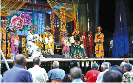 人群中,一个左耳佩戴助听器的老汉格外“扎眼”。老汉佝偻着背,挽着裤管,助听器盒子塞在上衣口袋里。“自打年轻时就喜欢听戏,现在听不清楚,还是喜欢听,缺啥也不能缺戏。”大戏唱完,老汉耳朵里嗡嗡的,余音回响,又能再哼几天。
