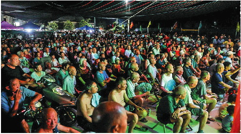 8月11日晚,在河南省开封市洧川镇宋庄村,村戏现场人气爆棚。